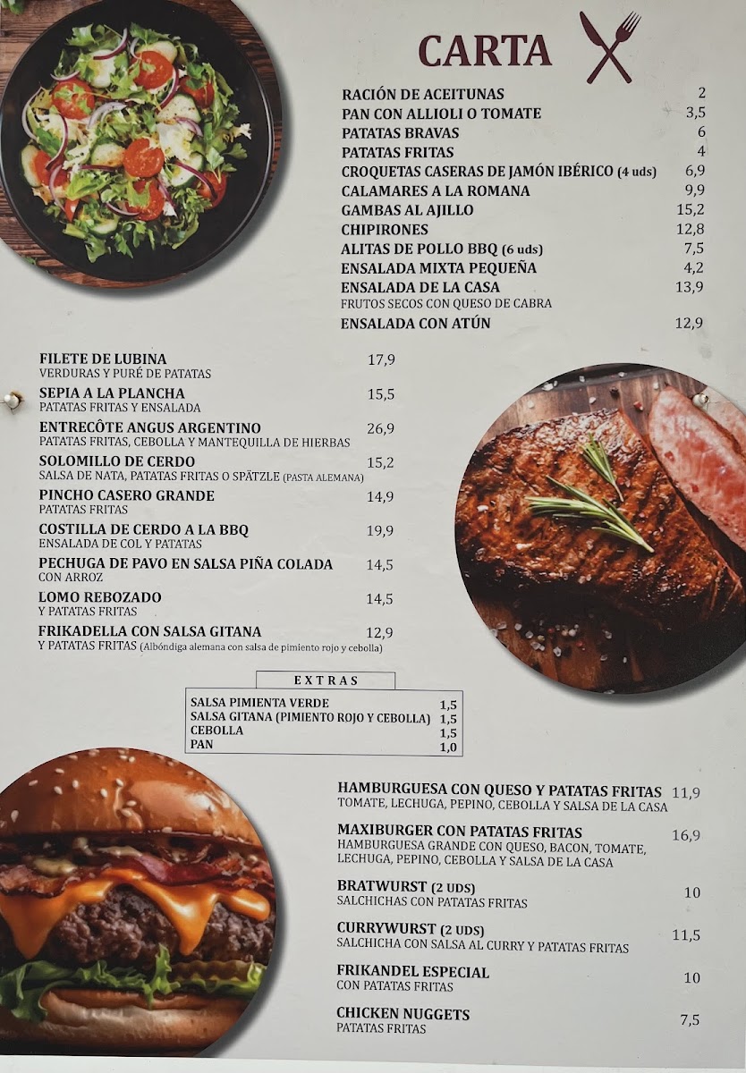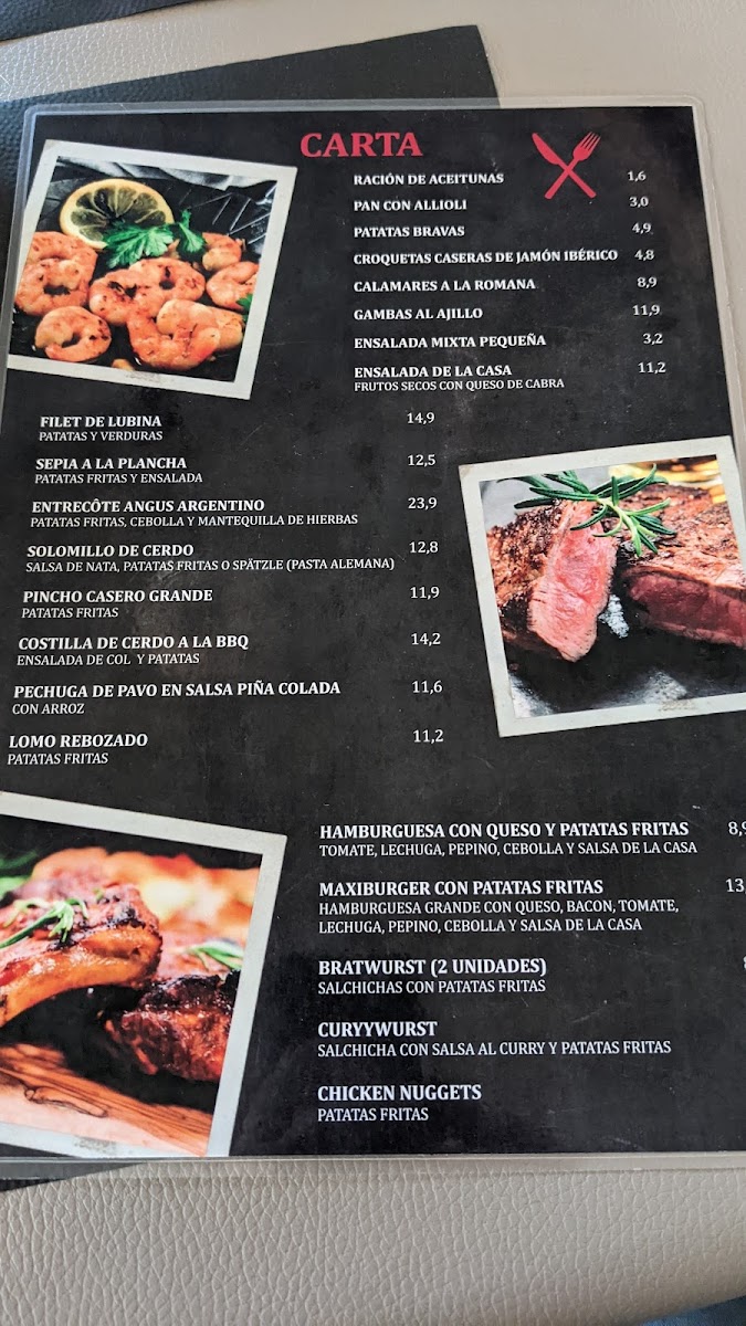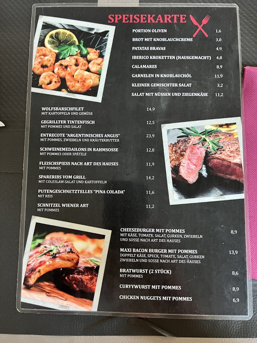 The menu at Lili & Toni / Glazini offers a satisfying mix of traditional and hearty dishes that cater to a variety of tastes. For those craving a classic comfort food experience, the Schnitzel stands out as a crisp and tender favorite. Seafood lovers will appreciate the Gambas, which are perfectly cooked and full of flavor, providing a delightful taste of the Mediterranean. The Ziegenkäsesalat, a refreshing goat cheese salad, serves as a lighter option, while the Rindersteak Sehr delivers a satisfying, juicy steak for those in the mood for something more substantial. For a bite with a bit of crunch, the Tintenfischringe (squid rings) are a delightful starter, light and crispy. Fans of burgers won't be disappointed either, with both the Burger Mit Pommes and Maxihamburguesa offering satisfying options, with the latter providing a notably larger, more indulgent serving. Finally, the Entrecot Angus is a perfect choice for steak enthusiasts, offering a rich, flavorful cut of beef. Each dish reflects the restaurant's dedication to quality and flavor, making for a well-rounded menu that can please both casual diners and those with more refined tastes.